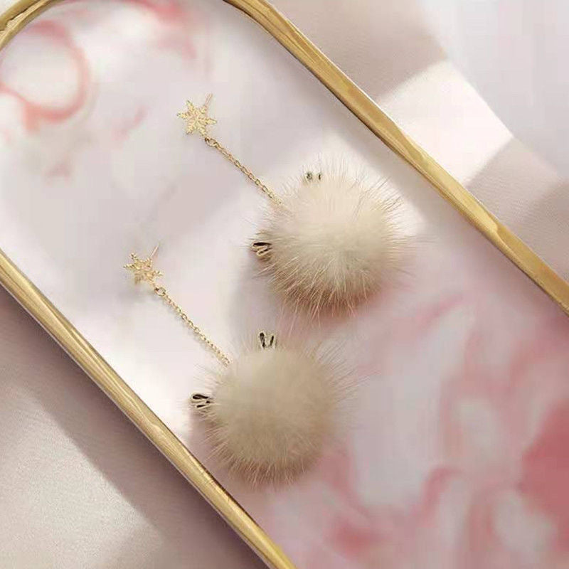 Christmas snowflake antler fur ball earrings