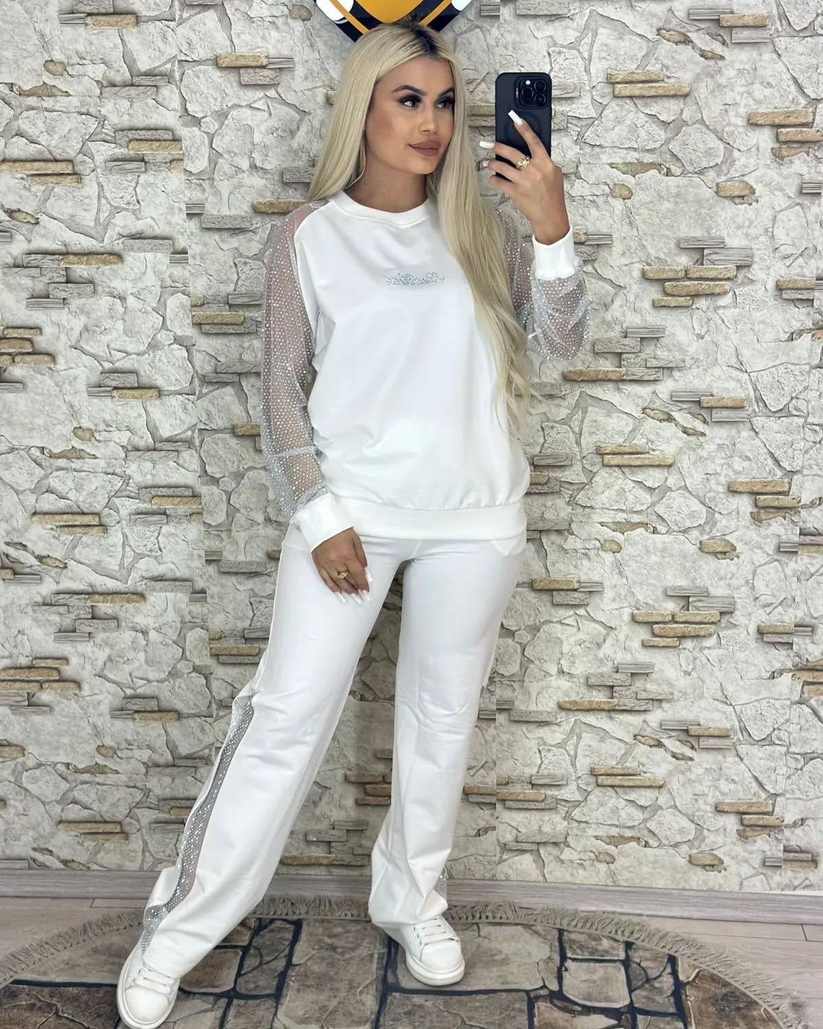 With transparent mesh sleeves and side mesh inserts on the pants, this design adds a subtle yet stylish accent. The mesh elements create a visual contrast and offer a fashionable, modern aesthetic.